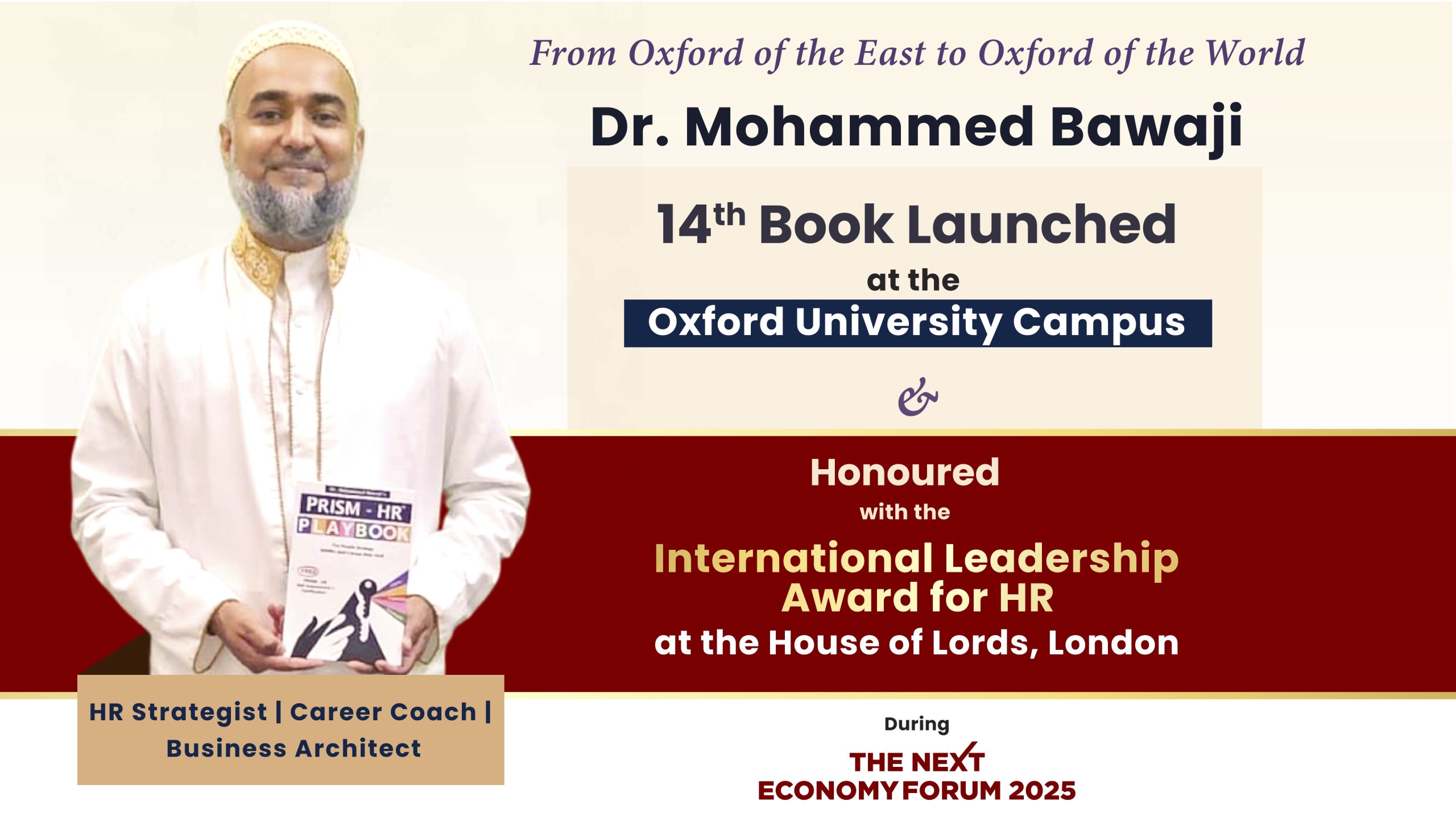In November 2025, my 14th book, The PRISM-HR Playbook, was launched at the University of Oxford Campus during The Next Economy Forum 2025 — making it the first HR Playbook by an Indian author to be featured there (as recognised by Prof. (Dr.) Bikash Sharma, President – International Academic and Management Association).